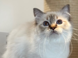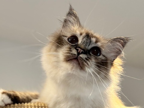 Ihre Tochter Franzi ist eine chocolate-tabby-point, geboren 1.5.2024.